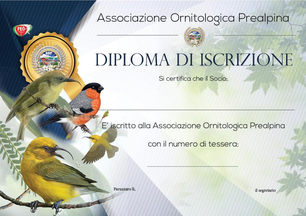 Tessere e il diploma dell'Associazione Ornitologica Prealpina