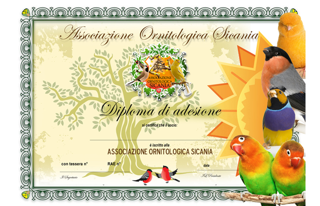 Ecco a voi la tessera e il diploma dell'ASSOCIAZIONE ORNITOLOGICA SICANIA....