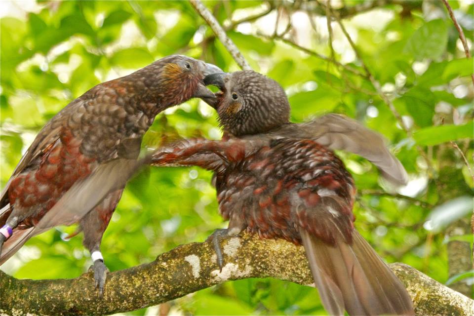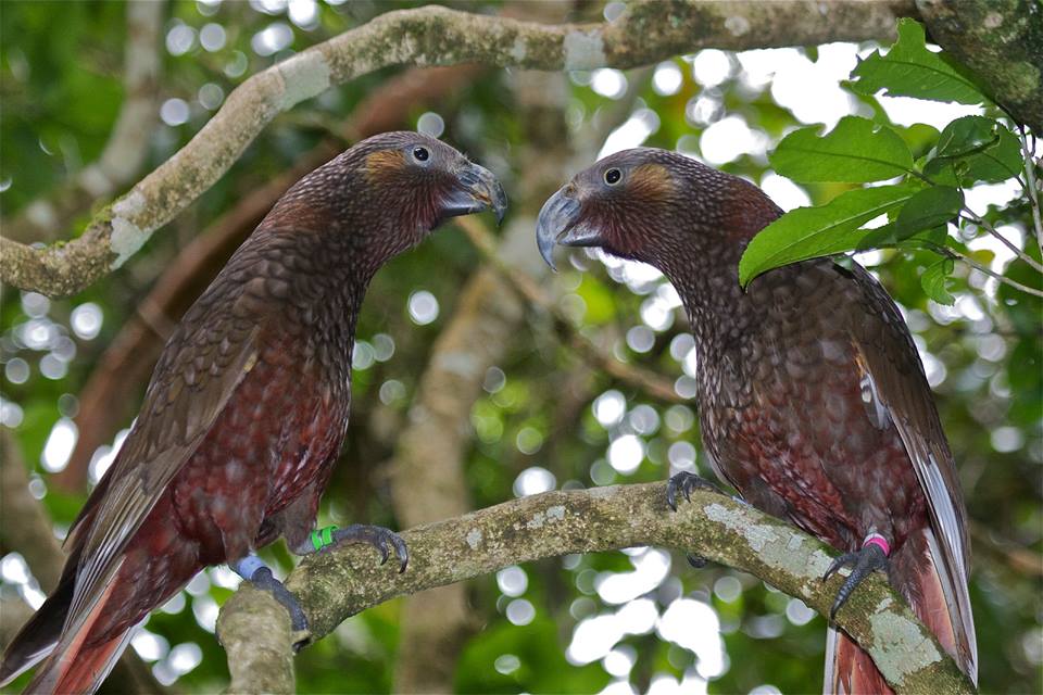 Il Kaka della Nuova Zelanda vive nella foreste di media altezza e nelle pianure