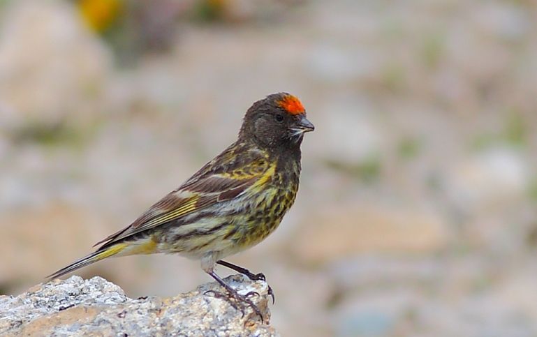 Verzellino fronte rossa (Serinus pusillus), Lunghezza 12 cm, con forma simile a quella del verzellino.