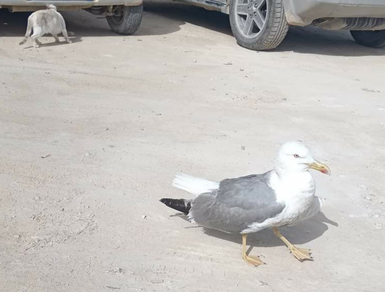 Gabbiano che ha bisogno di aiuto