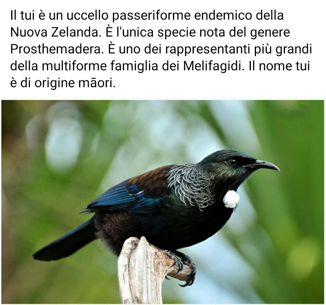 Il tui è un uccello passeriforme endemico della Nuova Zelanda. È l'unica specie nota del genere Prosthemadera. È uno dei rappresentanti più grandi della multiforme famiglia dei Melifagidi. Il nome tui è di origine māori.