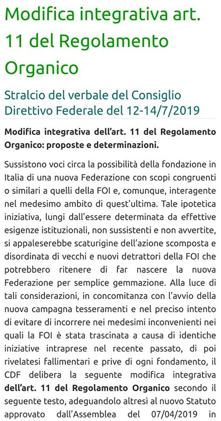 Nel nostro hobby c’è tanta confusione, solo continuo caos. E in tutto questo c’è la testimonianza negativa che la FOI ha ampiamente e chiaramente evidenziato una cosa ILLEGALE…...