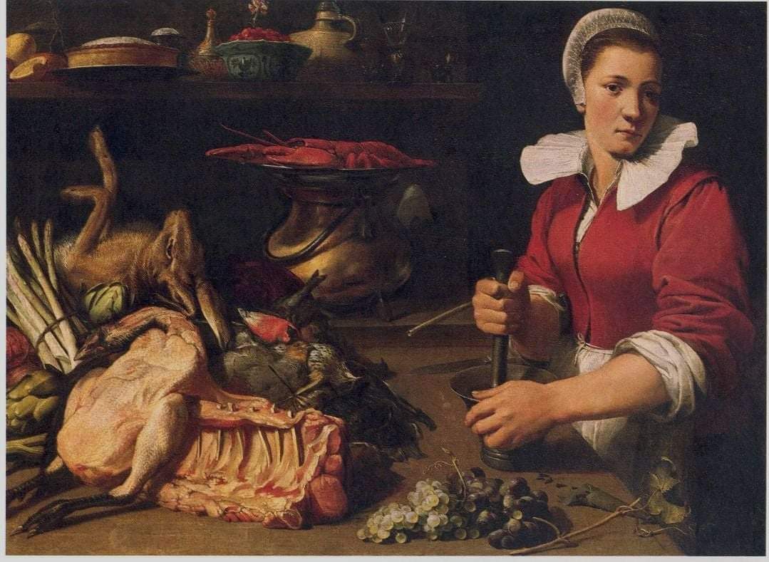 Prima di addentrarci nell’esame specifico dell’opera, può risultare utile evidenziare che i ciuffolotti non frequentemente trovarono ospitalità nelle nature morte, mentre ai cardellini veniva riservata più attenzione, forse perché a loro era stata attribuita una spiccata e diffusa simbologia cristologica ( rappresentavano l’anima salvata dal gesto e dalla parola di Cristo, la passione e anche lo stesso Redentore). Inoltre, i ciuffolotti comparivano più spesso nelle opere degli artisti dell’Europa settentrionale ( Germania, Belgio e Olanda) rispetto ai dipinti dell’area meridionale ( Italia, Francia e Spagna), però mai come protagonisti, bensì inseriti nei contesti pittorici con funzioni integrative, anche dal punto di vista cromatico: detto altrimenti, il rosso piumaggio dei maschi conferiva delle significative accensioni di colore in contesti pittorici tendenzialmente scuri come quelli proposti dagli autori fiamminghi o di orientamento fiammingo. Un chiaro esempio ce lo fornisce un artista di grande talento nato ad Anversa, Frans Snyder (1579-1657), che, nelle sue elaborate composizioni sceniche, sembra delegare a vari oggetti rossi ( tovaglie, frutta, astici, uccelli-in prevalenza ciuffolotti- ecc.) il compito di vivacizzare l’insieme, creando così una sorta di geometria di tale cromia ( v. foto).