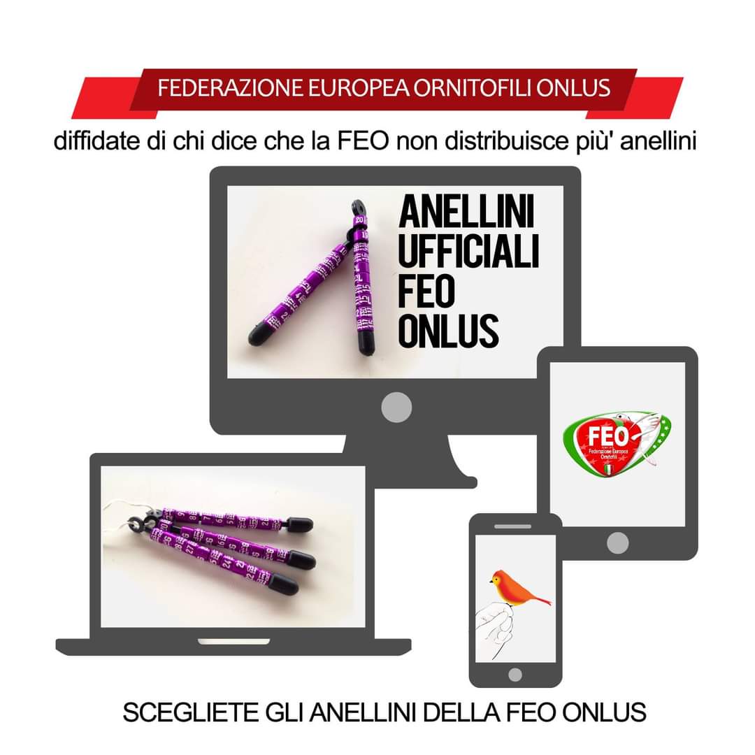 FEDERAZIONE EUROPEA ORNITOFILI mettendo in giro false notizie come quella che la FEO non distribuisce più gli anelli vogliamo tranquillizzare i loro animi dicendo che la FEO continuerà a distribuire gli anelli e dare i servizi a tutti coloro che sceglieranno di iscriversi con noi.