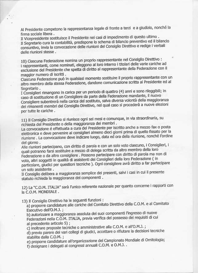 Dopo la pubblicazione del vigente (?) Statuto della COM Italia, cui è seguita quella del testo originale a fronte di quello modificato il 25 ottobre 2011, di seguito troverete lo Statuto della COM Italia opportunamente commentato – articolo per articolo – al fine di illustrare, anche a coloro che non sono abituati a leggere tra le righe delle varie sfaccettature delle norme, le regole di funzionamento della “rappresentativa nazionale di ornitologia”.